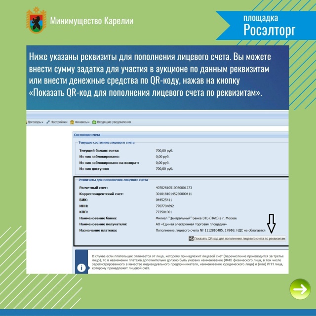 Задаток, внесенный победителем аукциона, не заключившим в установленном порядке договор купли-продажи или договор аренды земельного участка вследствие уклонения от заключения указанных договоров, не возвращается. Как внести задаток для участия в аукционе – в карточках.