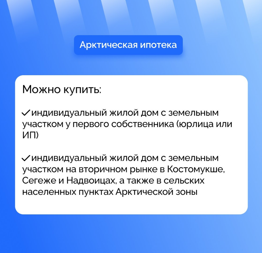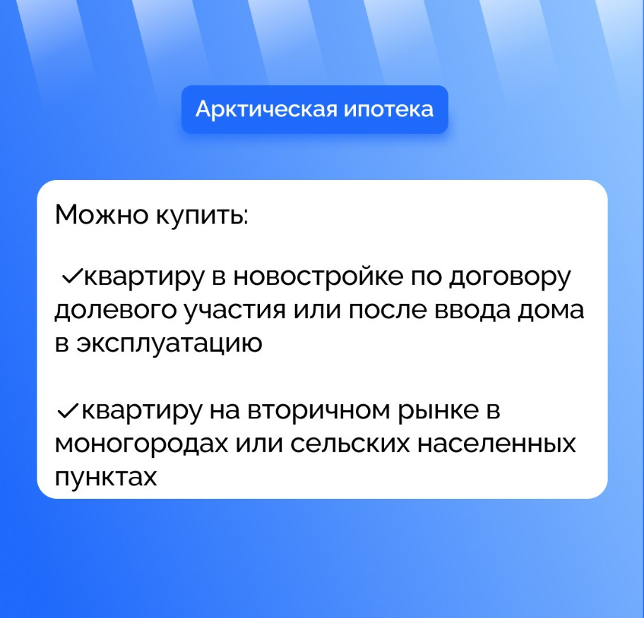 Арктическая ипотека позволяет купить квартиру в новостройке, готовый частный дом или получить деньги на строительство частного дома — с привлечением подрядчика либо своими силами.