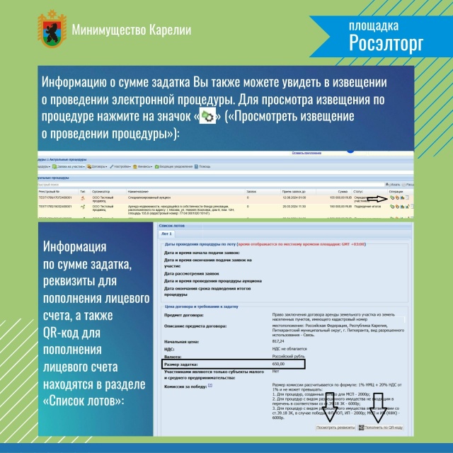 Задаток, внесенный победителем аукциона, не заключившим в установленном порядке договор купли-продажи или договор аренды земельного участка вследствие уклонения от заключения указанных договоров, не возвращается. Как внести задаток для участия в аукционе – в карточках.